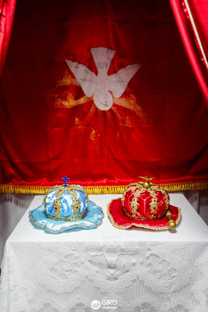 A cada ano, um novo casal imperial é coroado, escolhido entre pessoas da comunidade para comandar os festejos. A corte anda sempre acompanhada da bandeira do Divino, que traz a cor vermelha e remete ao fogo do Espírito, e pela bandeira azul, característica particular dos festejos em Barra Velha, que representa a Trindade.