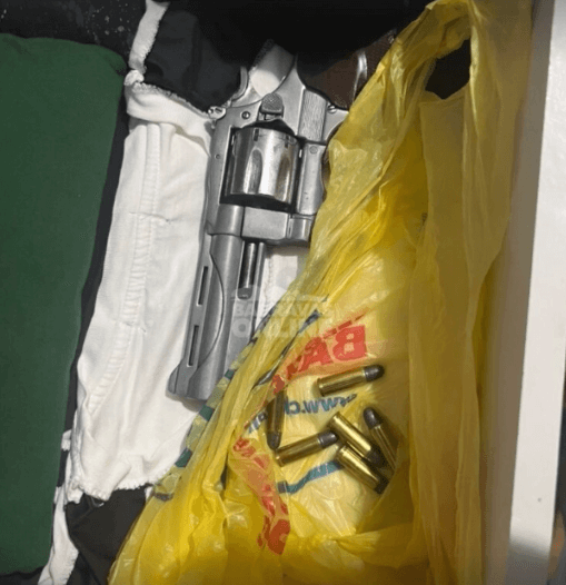Durante o cumprimento da ordem judicial, os policiais da DIC localizaram uma arma de fogo de origem estrangeira, com numeração suprimida, no armário do quarto do investigado. Em razão da apreensão, ele também foi autuado em flagrante delito pelo crime de posse ilegal de arma de fogo.