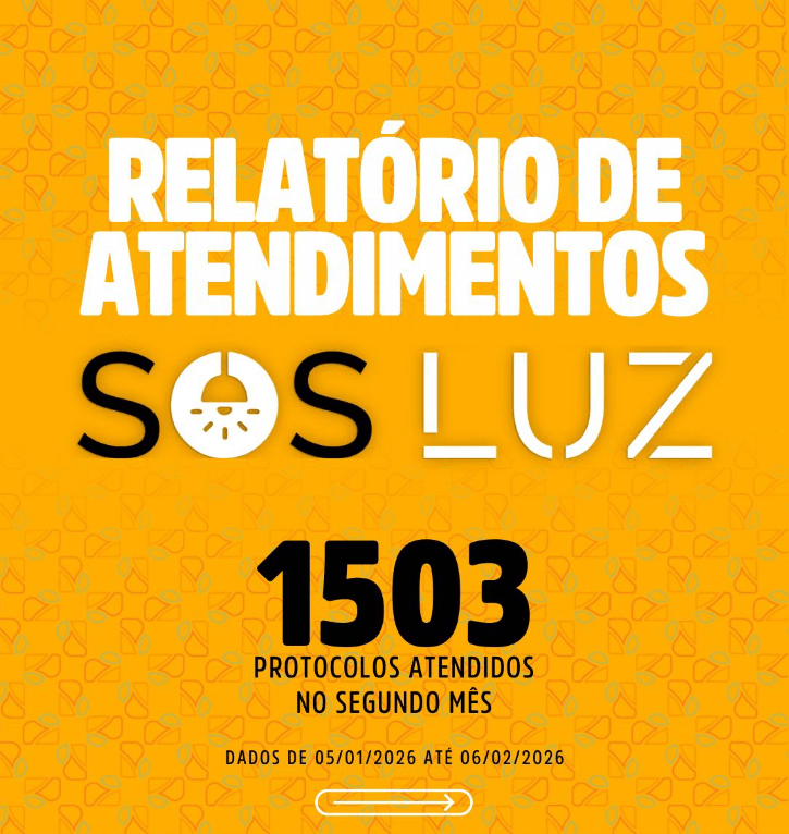 Entre os dias 05 de janeiro e 06 de fevereiro, foram atendidos 1.503 protocolos. No período, as equipes realizaram a substituição de 2.955 equipamentos da infraestrutura de iluminação pública. A troca de lâmpadas liderou os atendimentos, com 1.033 substituições efetuadas. A média diária foi de 62 chamados atendidos.