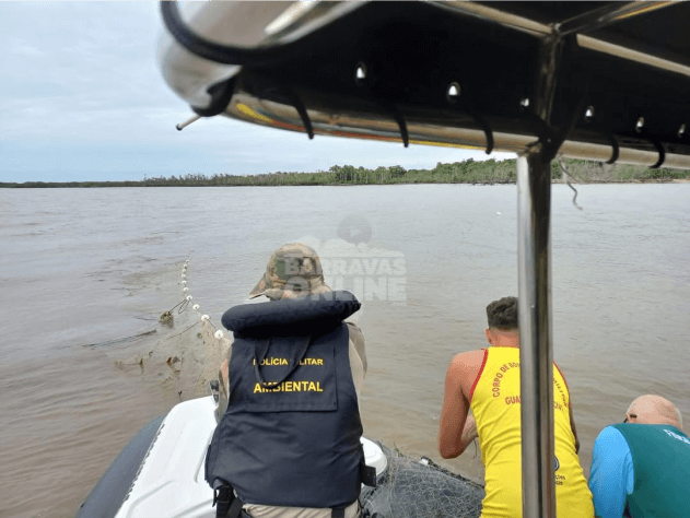 Uma fiscalização conjunta da Polícia Militar Ambiental, Fundação do Meio Ambiente (FUNDEMA) de Barra Velha e o Corpo de Bombeiros Militar de Barra Velha, flagrou três pessoas recolhendo uma rede instalada em local proibido durante patrulhamento aquático no Rio Itapocu. A rede estava em desacordo com a Instrução Normativa MMA n° 20/2005, que estabelece critérios e padrões para a utilização de petrechos de pesca na boca da barra do rio Itapocu, área estuarina entre os municípios de Araquari e Barra Velha.