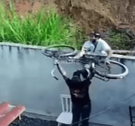 [VÍDEO] Câmeras mostram ladrões pulando muro de residência para furtar bicicleta e televisão em Barra Velha